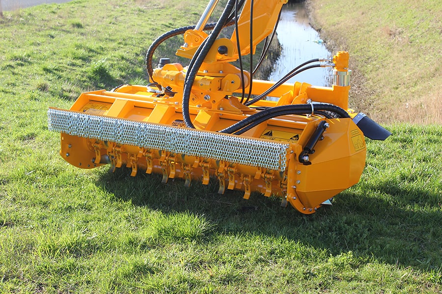 Vegetation is mowed with a rotating rotor with ‘loose’ hung flails