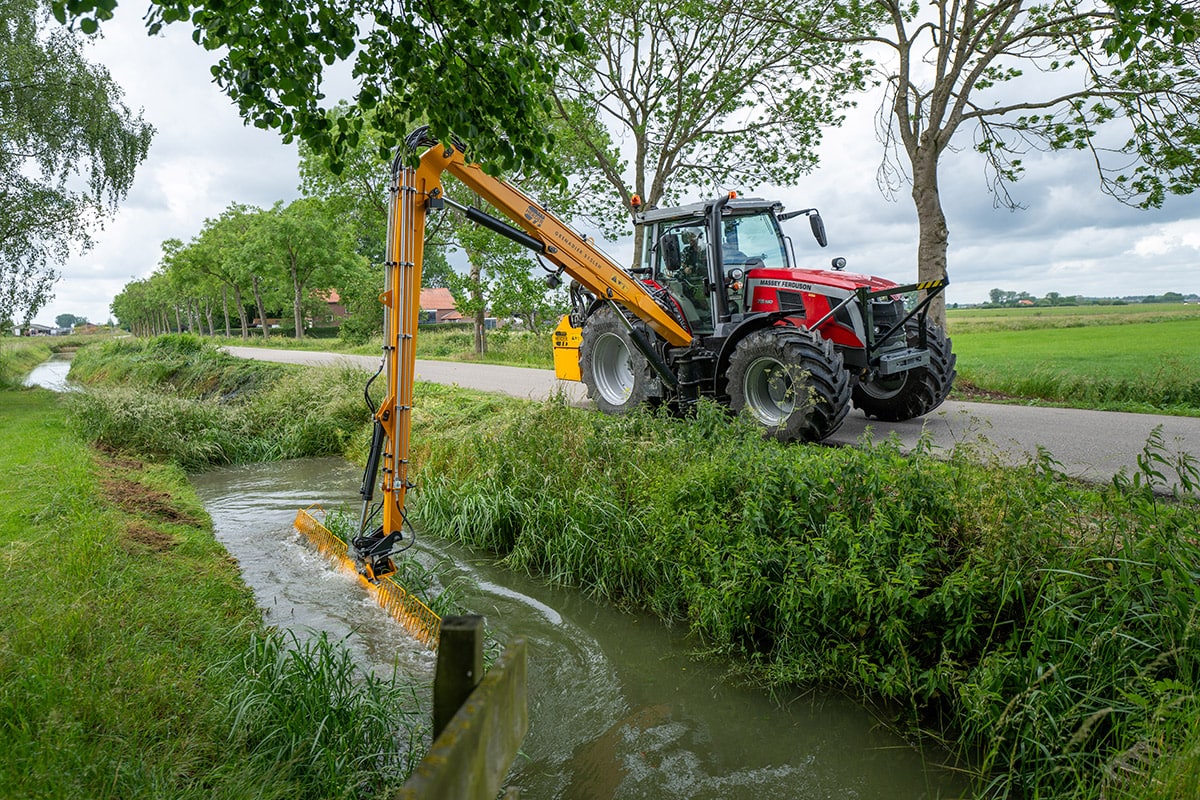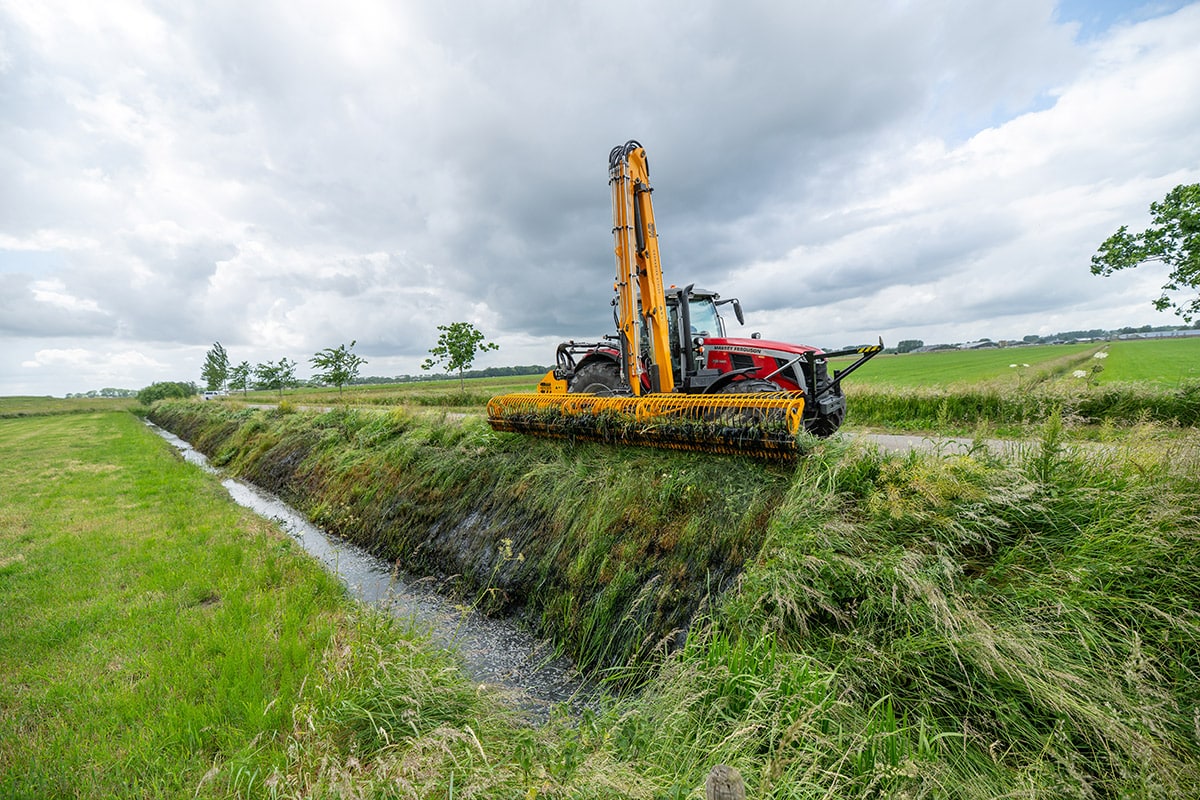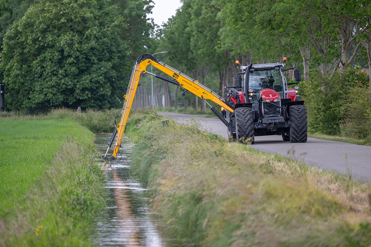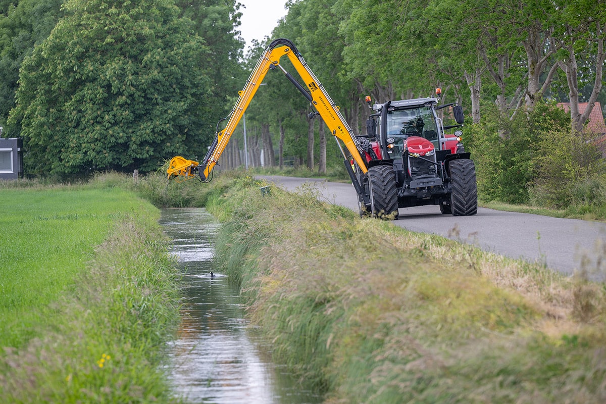 The Grenadier is the most versatile and most powerful tool carrier from Herder which can be used for the most diverse purposes in all situations, whether this concerns the maintenance of verges, ditches or plants and shrubs. More than 15 types of attachments can be attached to the Grenadier. The mowing boom is mid-mounted to the side of the tractor. This gives the driver a better view of the equipment. Furthermore, the physical load of the driver is reduced as a result of which an ergonomic workspace is created.