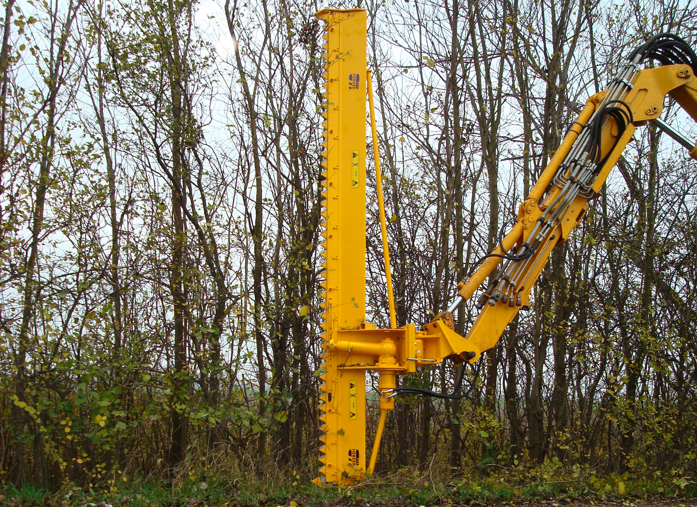 The cutting blade is driven back and forth via the drive arm by a hydraulic motor, ensuring efficient and uniform cutting of vegetation. Using the boom, the hedge trimmer can be accurately positioned to follow the shape of hedges and trees. Thanks to the rotating head, the trimmer can be used both vertically and horizontally.