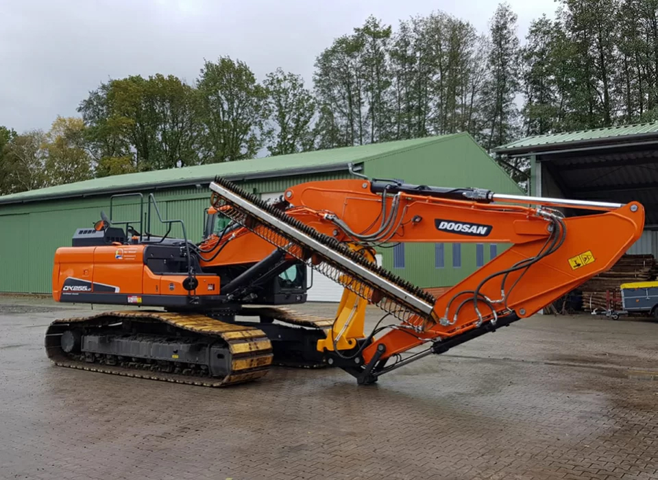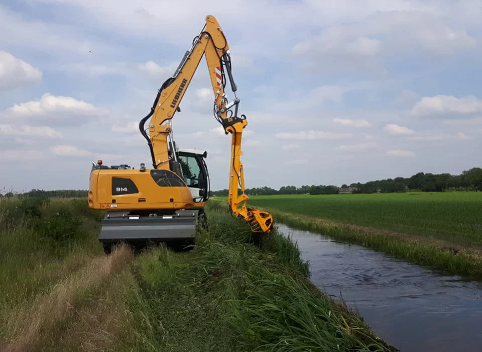 Herder peut également fournir des ensembles de flèches appropriés (flèches de godet de fauche) pour des excavatrices spéciales comme les machines Mecalac et Gallmac. La première partie de la flèche d’origine n’est pas remplacée pour ces excavatrices. Cette partie est étendue avec 2 ‘flèches de godet de fauche’.