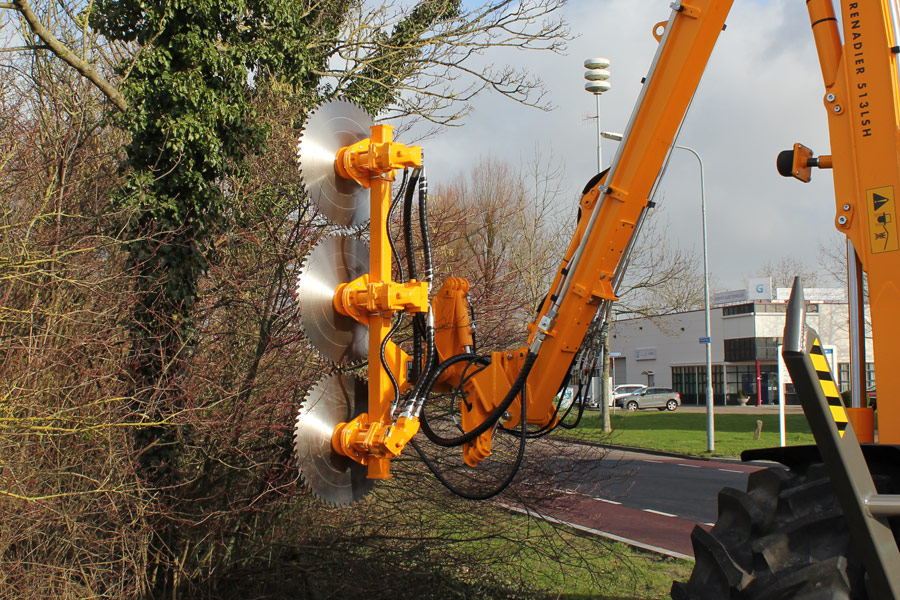 Vegetatie wordt gemaaid met een roterende rotor met ‘los’ opgehangen klepels
