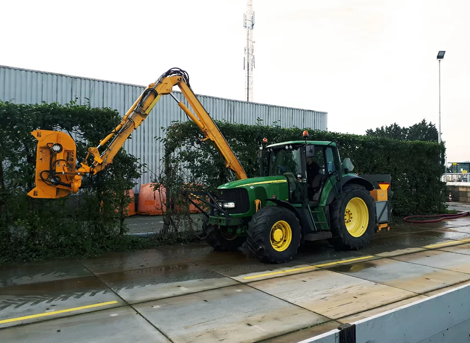 De heggenmaaier is geschikt voor het maaien en terugsnoeien van de houtachtige groei van heggen en bomen met een diameter tot 35 mm.